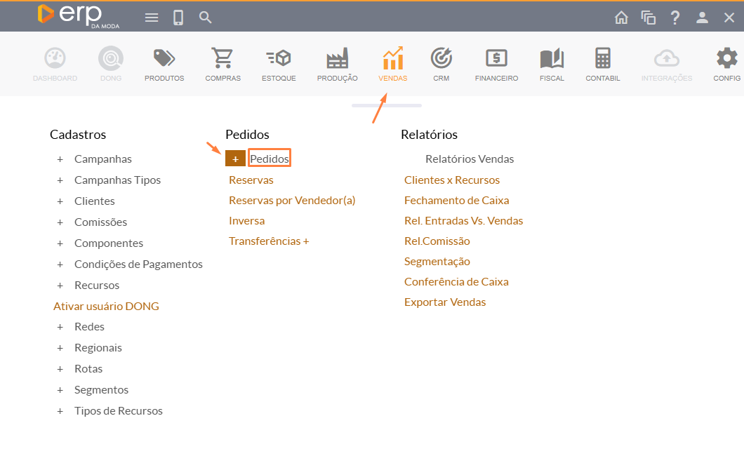ATENÇÃO Ao registrar o tipo de pedido, este deve ser especificado como "VENDA".