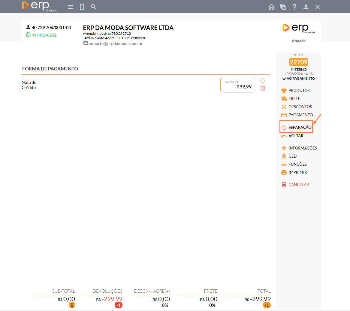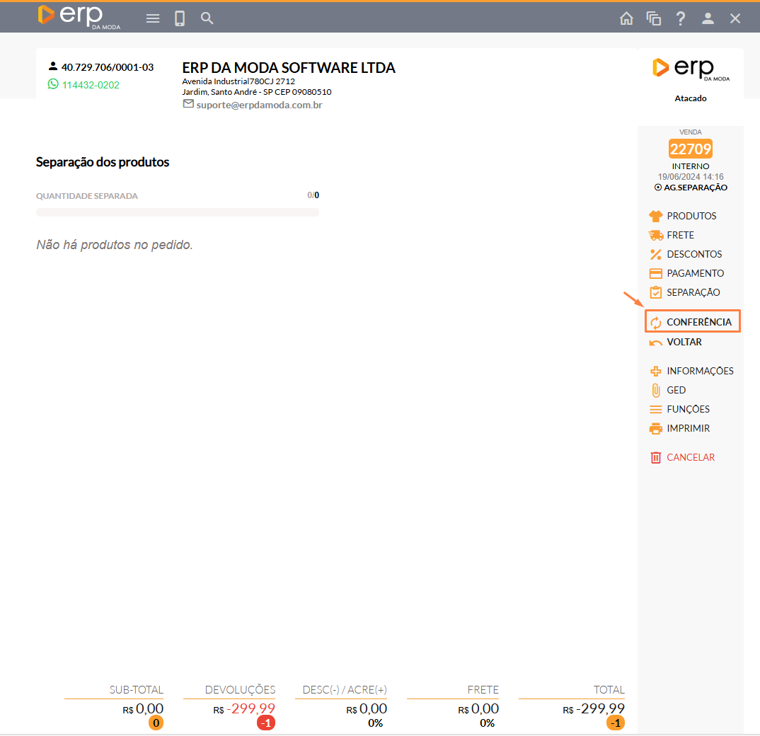 - (X) Como cancelar um pedido de produtos que já foram separados?