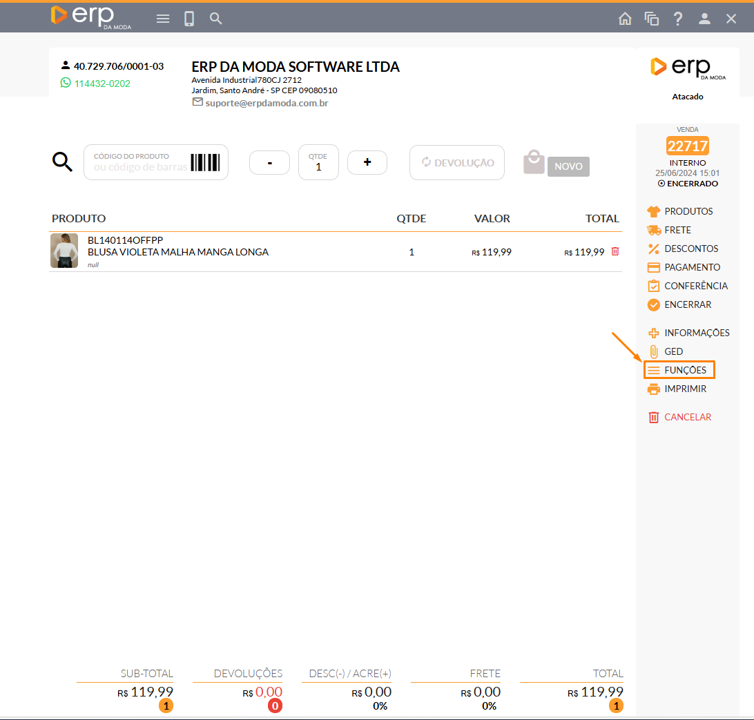 - (X) Como fazer uma devolução de venda?