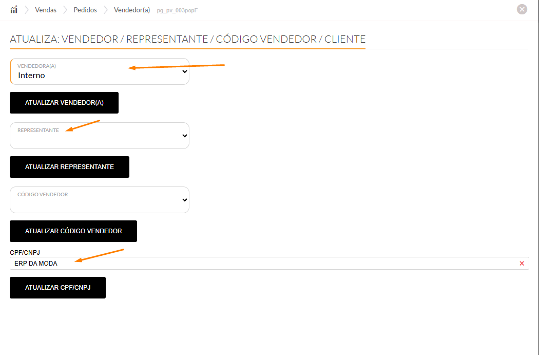 - Como alterar vendedor, cliente ou representante do pedido?