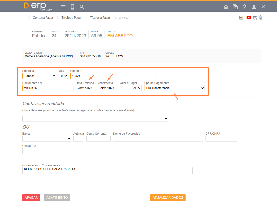 - (X) Como dar baixa parcial de um título no contas a pagar?
