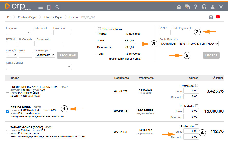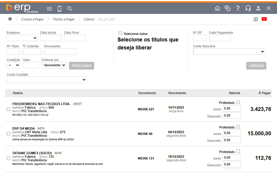 Selecione o título que deseja liberar (1)
