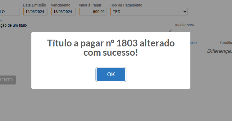 Pronto, seu título em aberto foi atualizado com sucesso.