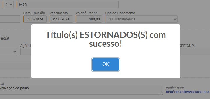 - Como estornar um título liberado com a data de vencimento ou banco errado