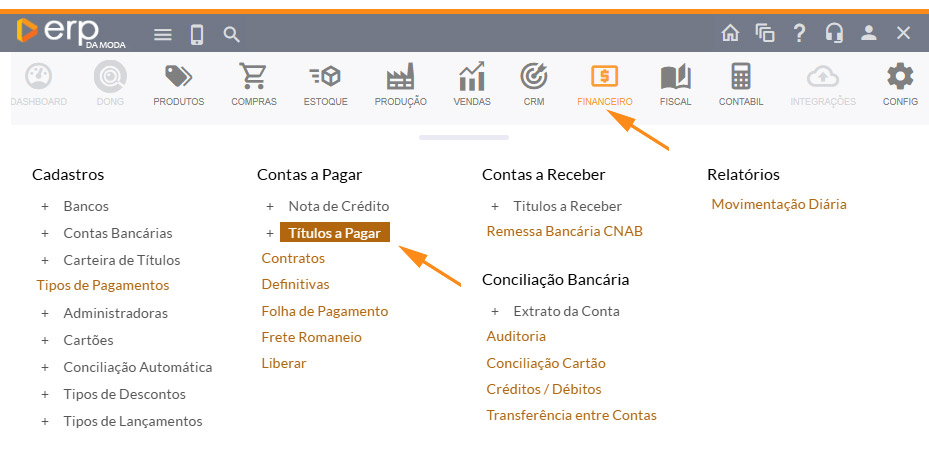 - Em seguida, clique na opção Títulos a Pagar, dentro do grupo Contas