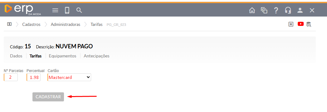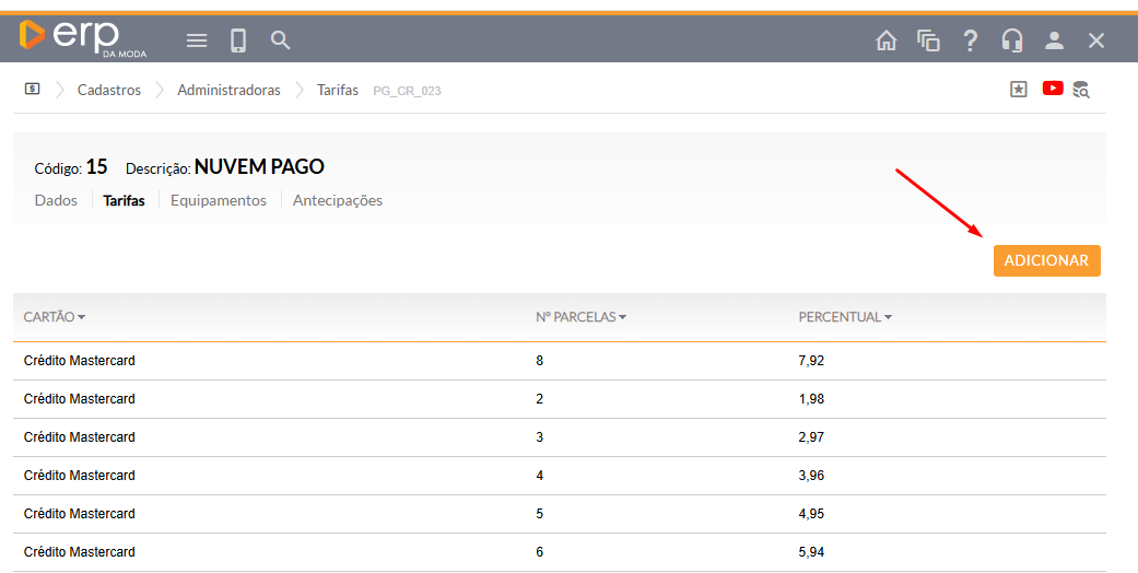 O correto cadastro das parcelas e taxas de cartão de crédito e débito é