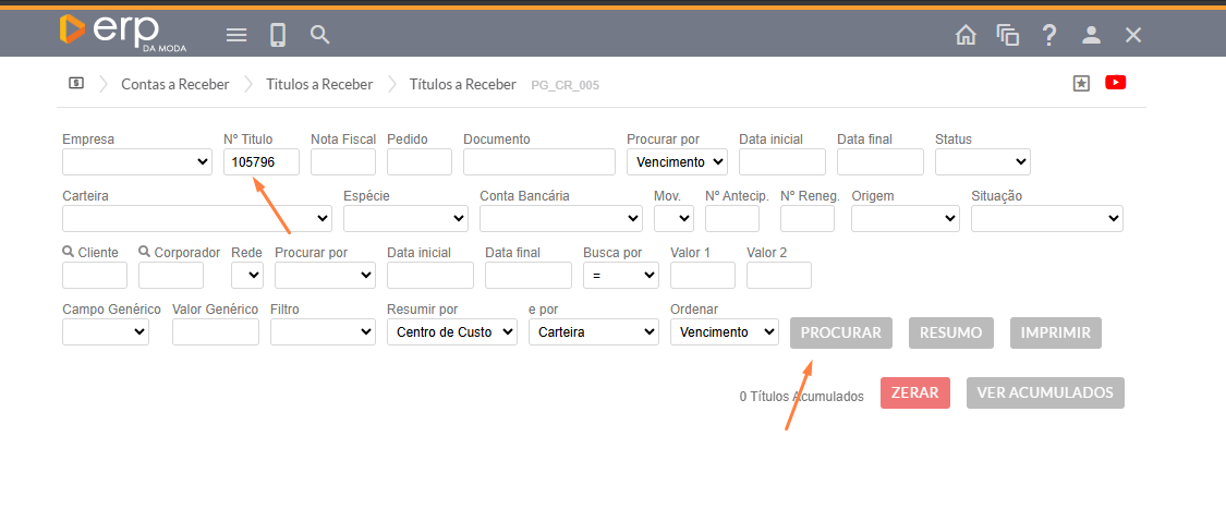 - Para o próximo passo, você deve preencher os campos necessários para localizar o título que deseja excluir.