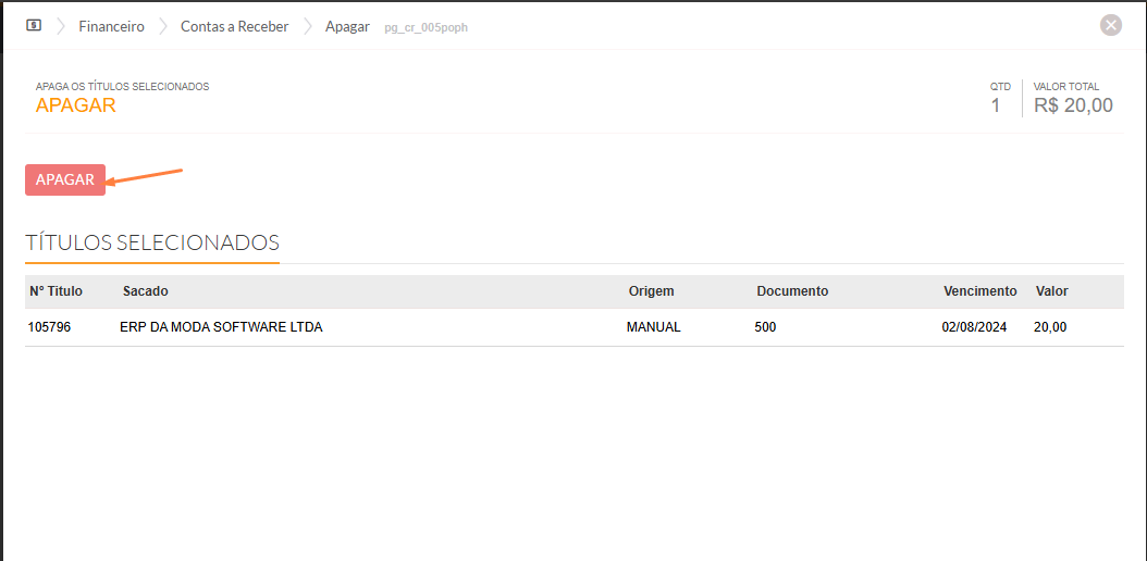 Ao clicar em "APAGAR", será aberta uma nova tela para que você confirme essa ação.