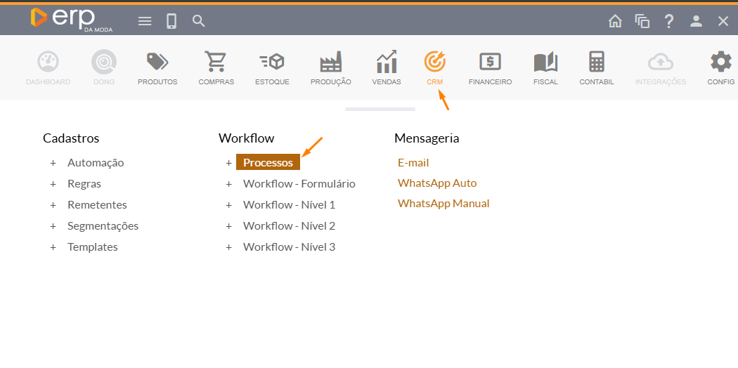 - Primeiro, clique em CRM > em seguida, em Processos.