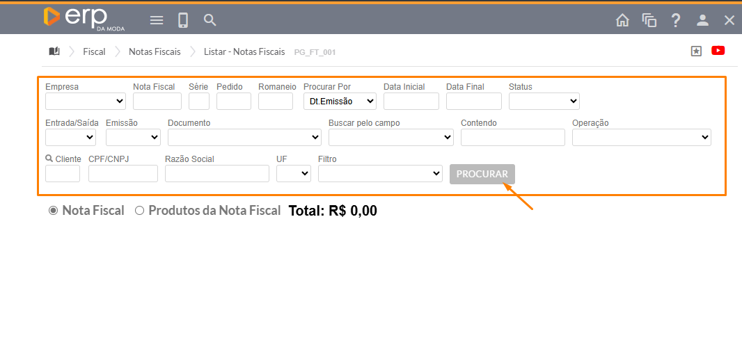 - Primeiramente, acesse a aba Fiscal e clique em Notas Fiscais.