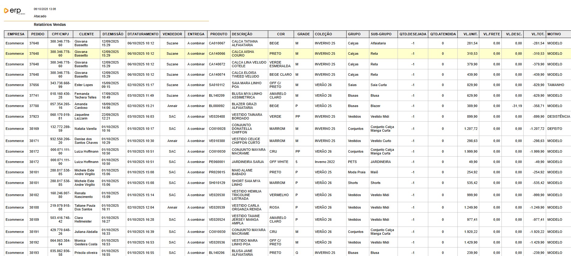 - Como gerar um relatório de troca/ devoluções de vendas ?