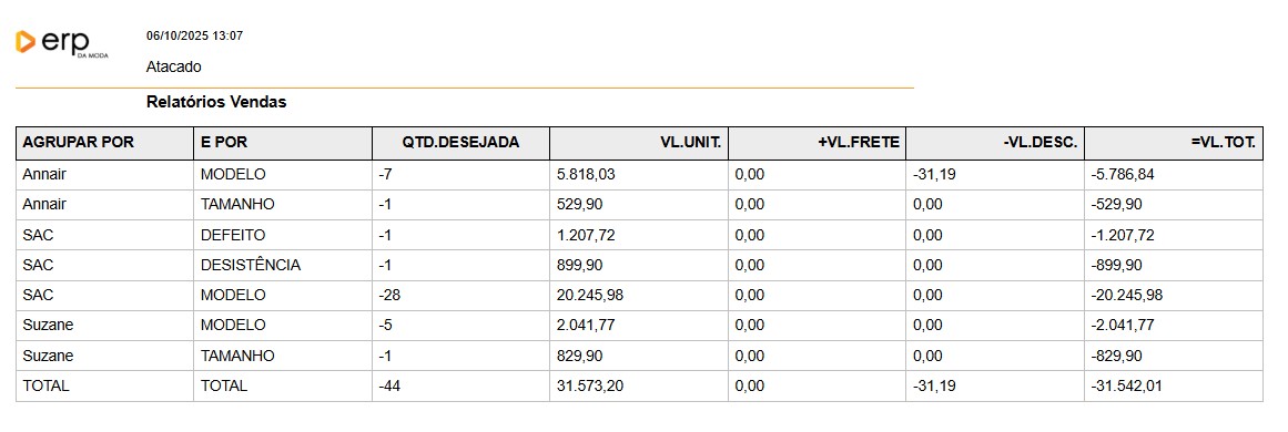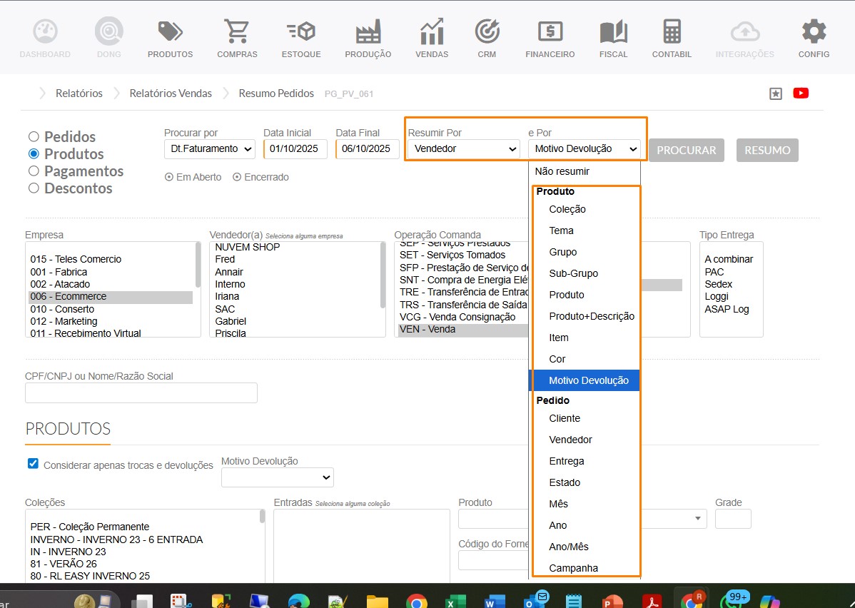 Como gerar um relatório de troca/ devoluções de vendas ?