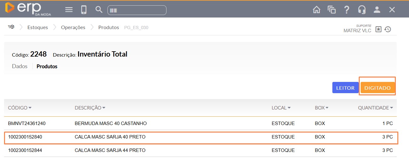 Neste exemplo vamos alterar o segundo item contado da imagem acima, o qual foram bipados 3 peças, e que precisam ser excluídos da contagem.